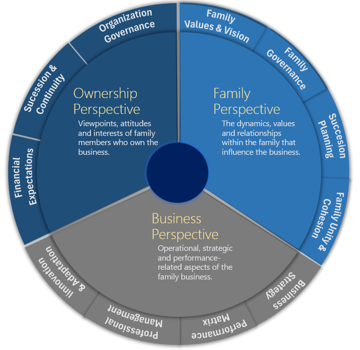 Fokus pada kesejahteraan keluarga dalam hubungannya dengan bisnis. Ini berkaitan dengan visi, nilai, hubungan dinamika dalam keluarga yang mempengaruhi bisnis.
